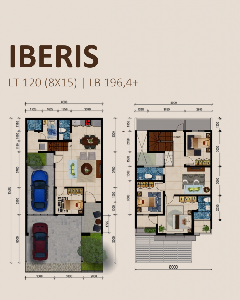 Kemewahan Tipe Iberis berlanjut ke interior. Dengan Luas Bangunan 196,4 m² (2 Lantai), rumah ini menawarkan volume ruang yang masif.